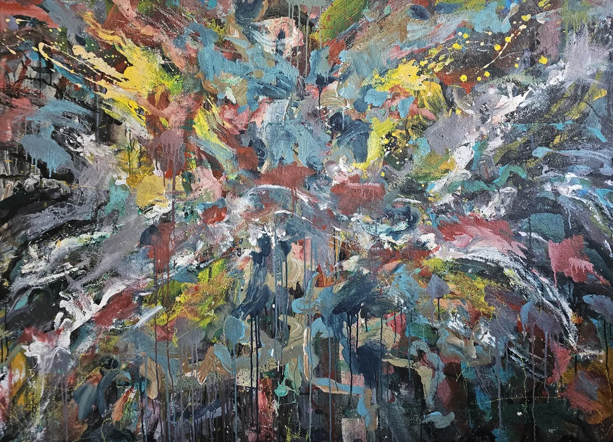 I found this big wood panel and I wanted to turn it in an artwork immediately. Now it is somehow "recycle-art" living a second life. I loved this rebirth very much! So I called it "Mittelerde" because for me it represents the energy of mother earth, exploiding from the middle of this artpiece.